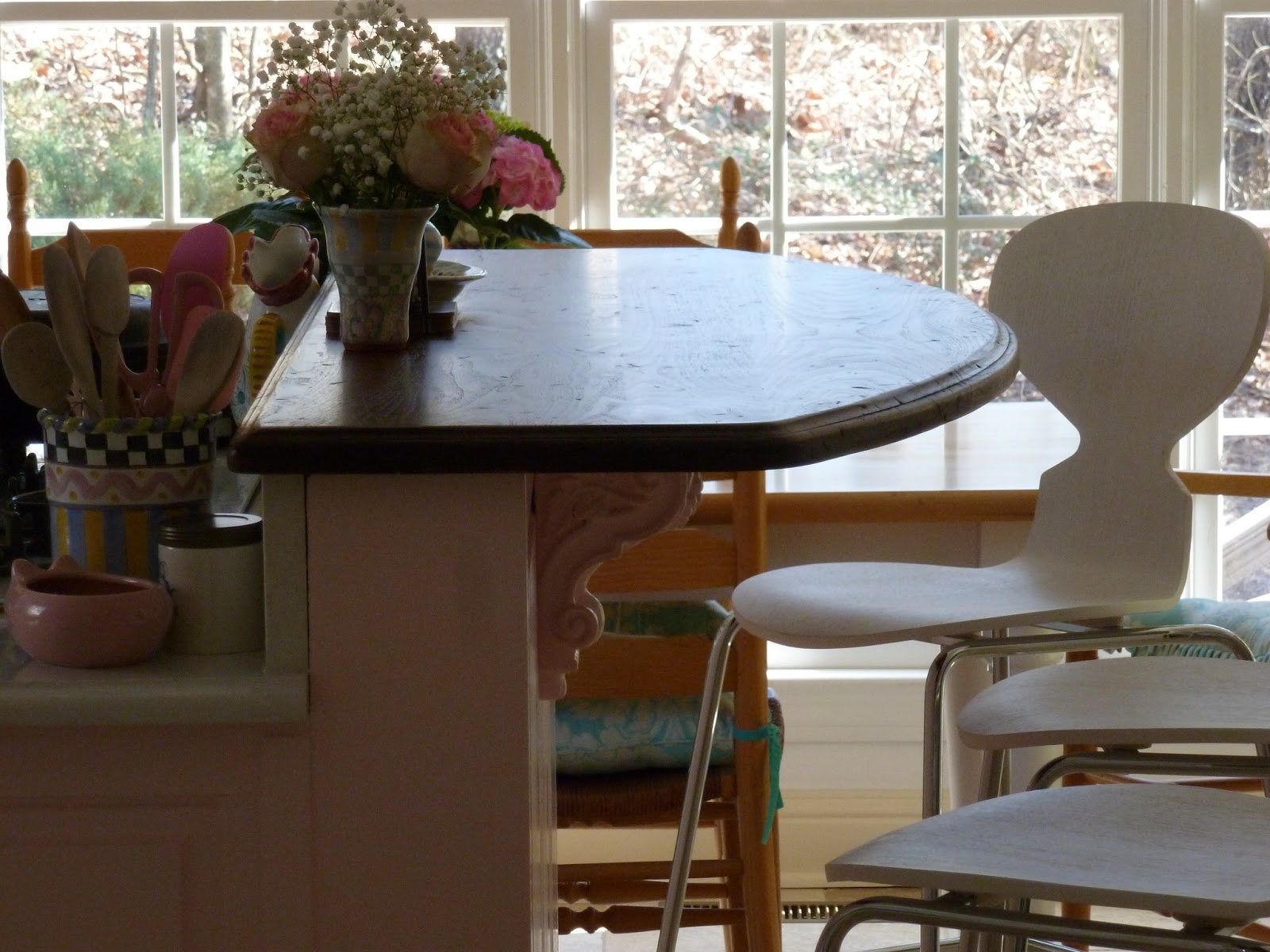 ReplyDeleteIt's beautiful! The counter is a perfect colour with the floor and backsplash and makes the room seem so much brighter. I love, love, love the pink you used on the island. It is so you and highlights the art and all the (I forget the exact name) - is it - McKenzie Child's pottery you have. The pink flowers look amazing in your kitchen. I think you should always have pink flowers in there (well okay, they don't always have to be pink, but they sure do look beautiful). What a great job you did.