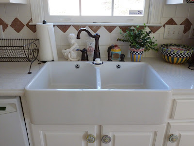 The backsplash DOES look so pretty now. It really picks up on the two tones of color. I love it all! Your sink it beautiful. We SO need a new sink in our kitchen. With your floors and that pretty pink color, it looks so fresh and clean. Everything works perfectly. You have such style my friend!